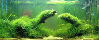 This large, 40 gallon tank features multiple moderately sized pieces of Manzanita Wood, which were soaked in water for two months before being added to the layout. Initially, palm-sized patches of live aquatic moss were attached to the branches. Over time, the moss grew and eventually covered each fully, replicating pieces of moss-covered wood you’d see in nature.