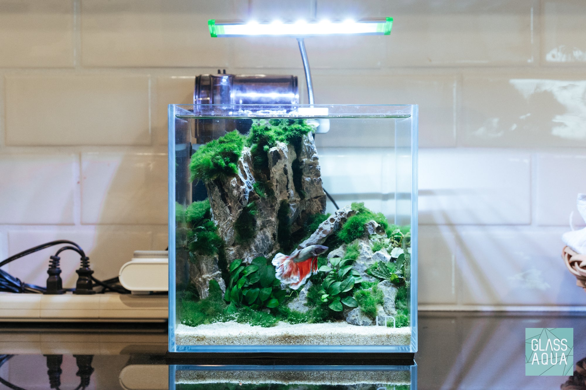 Grey Mountain Plateau is a low light planted betta fish tank that was improvised on the spot. With a different concept in mind and everything ready to go, we forgot our original rocks for the scape! Rather than scrap the project, we made do with what we had on hand and the results exceeded expectations we set for ourselves!